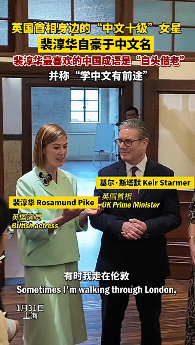 据CGTN报道,英国首相斯塔默1月31日来到上海访问,前往外滩参观,步行感受黄浦江两岸风景。同日,斯塔默在英国女星裴淳华(Rosamund Pike)的陪同下,与中国学生进行了交流。
